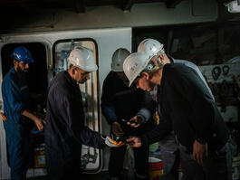 TURKEY. Istanbul. 2022. Men working in a vessel named Kafkametler,...
