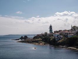 TURKEY. Istanbul. 2022. A man watches the sea from Rumelifeneri,...