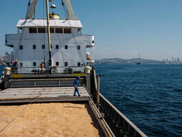 TURKEY. Istanbul. 2022. A vessel carrying grain from Ukraine...