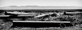 USA. Cantua Creek, California. 2022. Irrigation pipes.