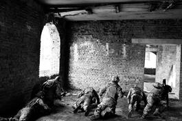 UKRAINE. March 2023. Ukrainian soldiers train in an abandoned...