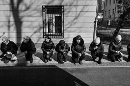 UKRAINE. March 8, 2023. People form a line waiting for a bread...