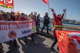 FRANCE. Normandy. Fecamp. April 2023. General strike against the state retirement reform.