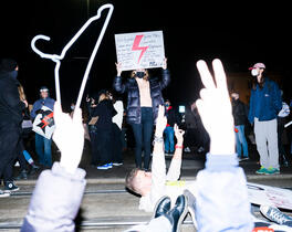 Protester blocking the street...