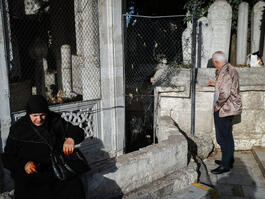 TURKEY. Istanbul. 2022. People seen near the cemetery in Eyup....
