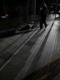 TURKEY. Istanbul. 2022. A woman walks on a street with her dog...