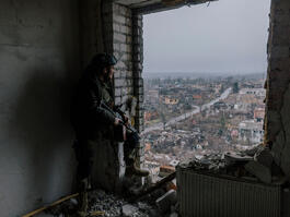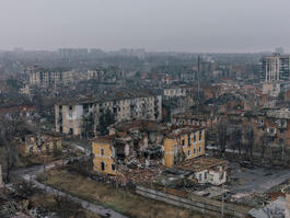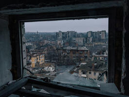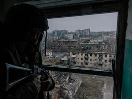 UKRAINE. Bakhmut. 26 January 2024. View over destroyed Bakhmut....