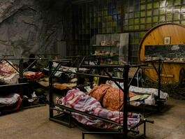 UKRAINE. Popasna. 27 January 2024. A mural close to Popasna which...
