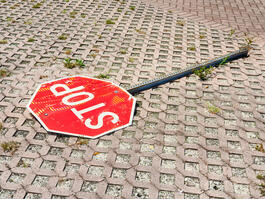 USA. Florida. September 8, 2024. A fallen stop sign.