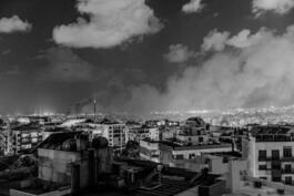 LEBANON. Beirut. October 2024. Bombs seen from Gabriel's rooftop....