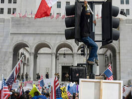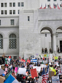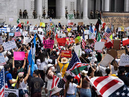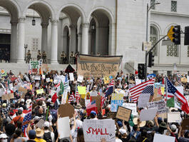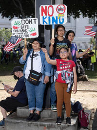 USA. California. LA. June 14, 2025. No Kings day protest in downtown...