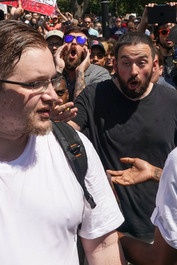 USA. Boston, Massachusetts. 2017. A man expressing far right...