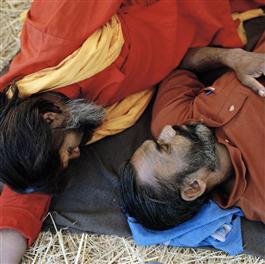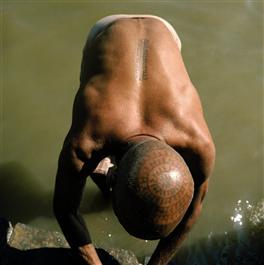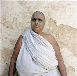 The Ramnamis are a small hindu sect from central India. As leather-workers they are on the lowest rung of the caste-system, because they process the skins of dead cows and are considered 'untouchable'. Traditionally this status meant that they were prevented from entering Hindu temples along with the other castes. So, in an expression of their own proud religious convictions, the Ramnamis began the practice of tattooing the name of the god Ram all over their faces and bodies. In this way they wished to show that everyone is equal in the eyes of God and that they have no need of temples to confess their faith. Today the Ramnami tradition continues with its own strand of Hindu belief and outdoor prayer areas, and its members hold their heads high in the knowledge of their devotion to their faith.