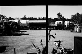 Australia. Queensland. Rodeo practice bucking drum. 2003.