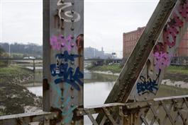 GB. ENGLAND. Bristol. Old railway bridge in Bedminster with a...