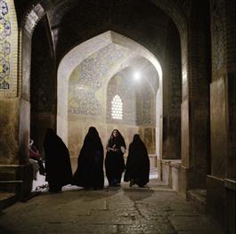 IRAN. Isfahan. Women arrive for friday prayers at the blue mosque....