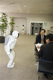 JAPAN. TOKYO. 2007. ASIMO Honda's robot. ASIMO collects drinks...