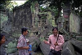 Cambodia. Angkor. A man playing a traditional Cambodian musical...