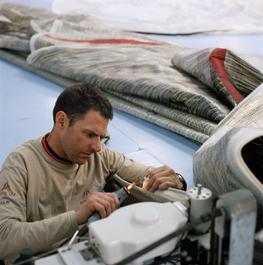 SPAIN.Valencia. China team, spare mast in the sail loft.