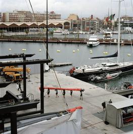 SPAIN.Valencia. The French Areva Challenge sail loft, the shore...