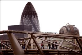 UK. England. London. A view of the Gherkin (Swiss Re) building...