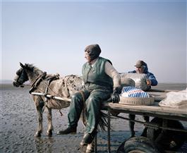 GB. Wales. N. Gower. Picking Cockles at the low tide at Penclawdd....