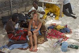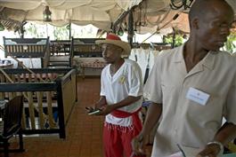 KENYA. Mombasa. Serena Beach Hotel. Selling tribal artefacts....