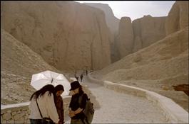 EGYPT. Thebes. Valley of the Kings. A tourist snaps his girl...