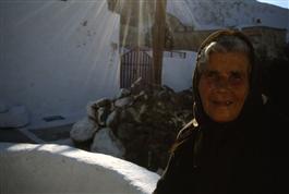 GREECE. Santorini. Finikia. Portrait of Margarita Markozane,...