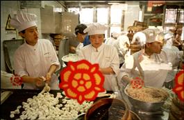 CHINA. Shanghai. Restaurant kitchen prepares meals in the Yuyuan...