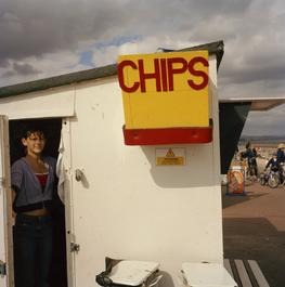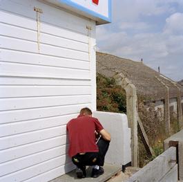 G.B. ENGLAND. Kent. Dungeness. A vandalised phone box. 2003.