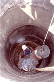 Africa. Rwanda. Kibangiro. Draining the last drops of water...