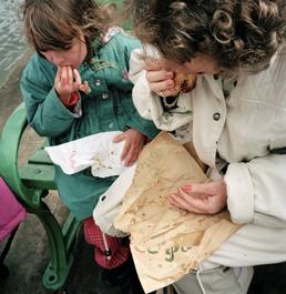 GB. England. Cornwall. Padstow. Eating Cornish pasties. 1991....