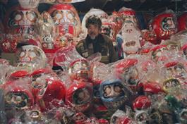 JAPAN. Fuji City. Dharma festival, stall selling Dharma heads....