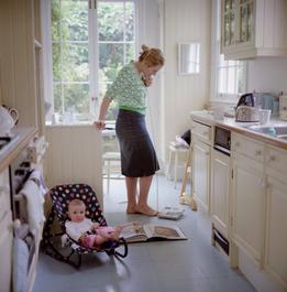 GB. London. Susie BOYT and Tom ASTOR, with their baby Mary, at...