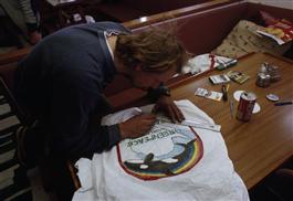 ANTARCTICA. Preparing banners and overalls for the demonstration...