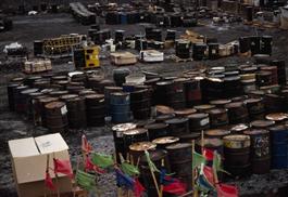 ANTARCTICA. Hazardous waste in drums at the US base McMurdo....