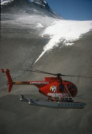 ANTARCTICA. Greenpeace helicopter flying through the Dry Valleys....