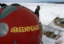 ANTARCTICA. Greenpeace demonstrators at Dumont D'Urville french...