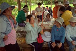 JAPAN. Miyako Jima Island. Old ladies waiting to play Groundgolf....