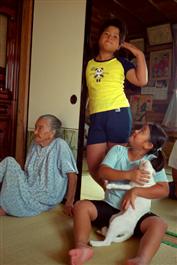 JAPAN. Miyako Jima Island. Old lady, Mrs Kawakami Oshi, 87, waiting...