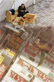 JAPAN. Tokyo. Homeless man in Shinjuku