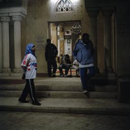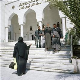 EGYPT. Cairo. A young girl waits outside the men's section of...