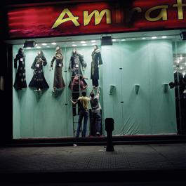 EGYPT. Cairo. Window Dressing. Workers prepare a display at a...