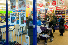 UK. Oldham. 2013. Bargain shops and payday loan outlets in Oldham...
