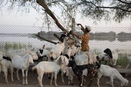 MYANMAR. MEIKTILA. Goat herd near lake.