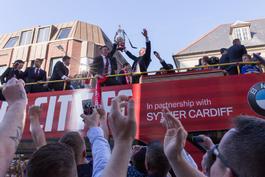 GB. WALES. Cardiff. Celebrations of Cardif FC promotion to the...