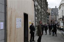 UK. London. In preparation for riots in the city of London bank...