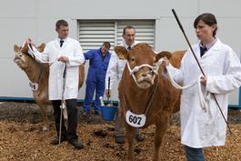 GB. Scotland. Edinburgh. Royal Highland Show. Preparing cattle....