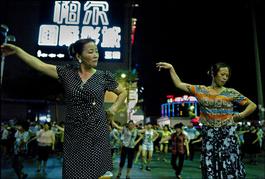 China. Guangdong. Chang An. Group dancing outdoors after nightfall...